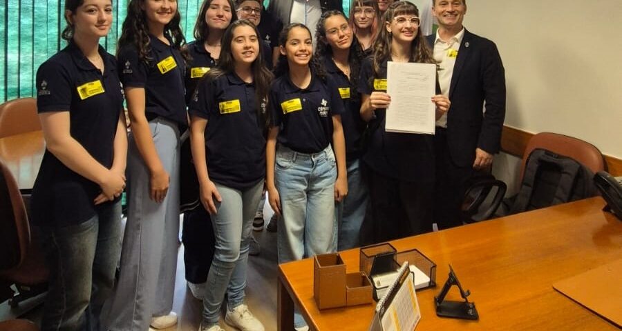 Na visita a deputados federais, o grupo conseguiu uma emenda parlamentar no valor de R$ 100 mil para construir a vila das abelhas na escola Thereza Mazzolli. A aluna da escola, vereadora mirim Yasmim Lopatiuk, fez a entrega oficial da solicitação para o deputado Zé Trovão (PL). “Esta é a primeira de muitas emendas que a Câmara Mirim pretende trazer para Joinville”, espera Juliana.